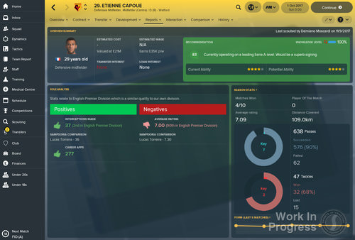 Football Intelligence – A realistic transfer market that reflects the inflated transfer fees and contract values, more clauses to help finalise that blockbuster deal and the more intelligent transfer and board AI that take into account more contextual information from the game world.